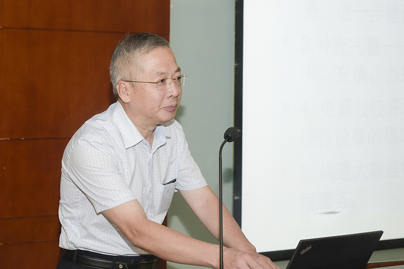 贾卓生主任就我校一卡通建设情况进行了汇报。介绍了我校一卡通的建设进度、资金投入以及系统功能。通过制定相应管理办法规范一卡通的应用、通过卡面设计大赛吸引全校师生共同参与一卡通建设、通过印发材料和视频宣传一卡通功能并深化一卡通的应用等,使一卡通深入全校师生的生活与工作。介绍了一卡通在我校信息化建设中发挥的重要作用,协调全校几乎各个部门共同参与系统建设、通过一卡通业务推动学校办公自动化系统的应用、通过对一卡通数据的深度挖掘为学校管理决策提供支持等。最后介绍了一卡通下一步的建设内容与发展方向。